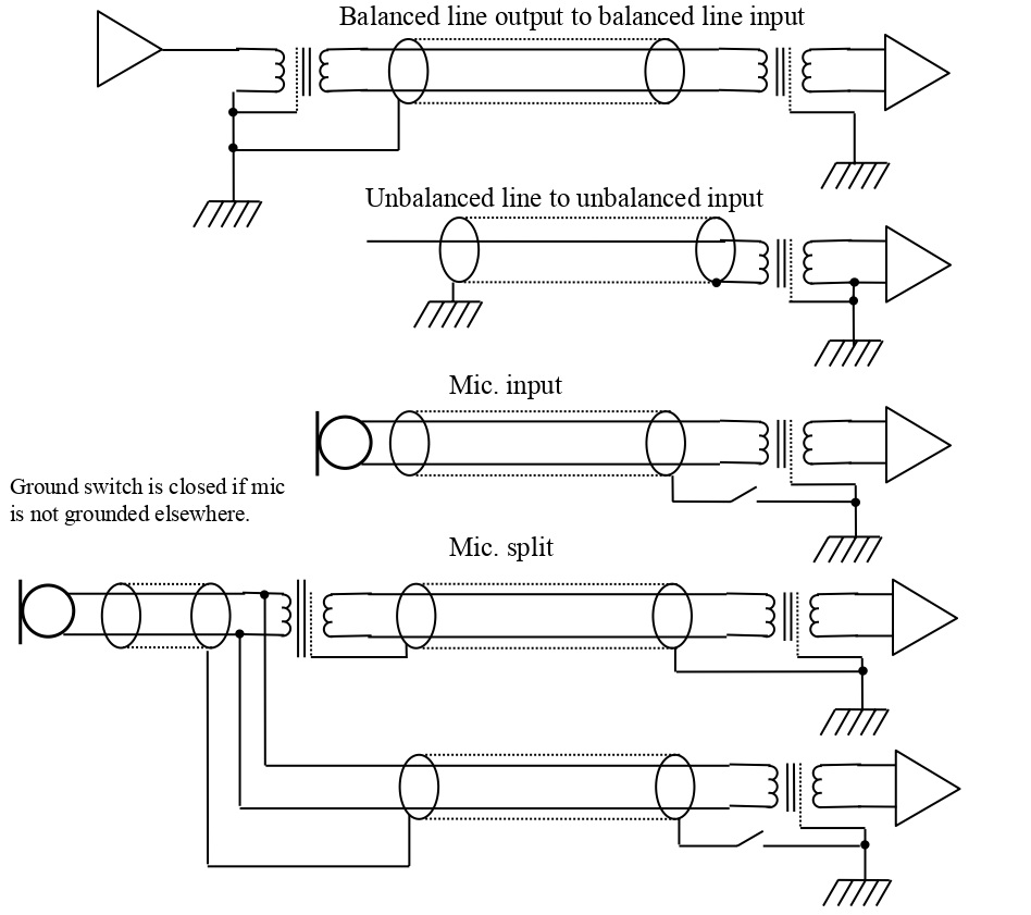 In case of microphone splitting, the grounding scheme must be carefully designed to maintain isolation and minimize noise.